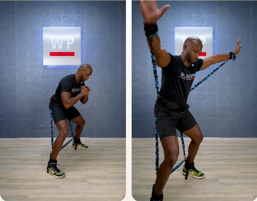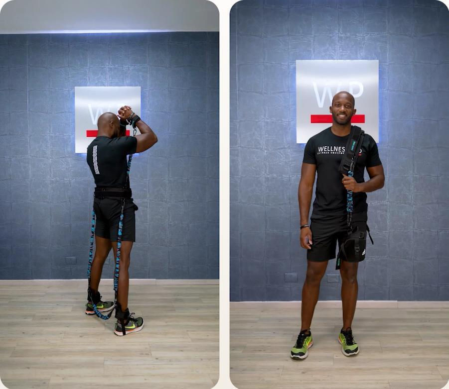 Этот тренажер легко надевается с помощью ремня вокруг бедер и двух эспандеров на лодыжках, обеспечивая дополнительное сопротивление при выполнении приседаний и прыжковых упражнений. Это способствует более эффективной активации мышц, повышая силу и взрывную силу.