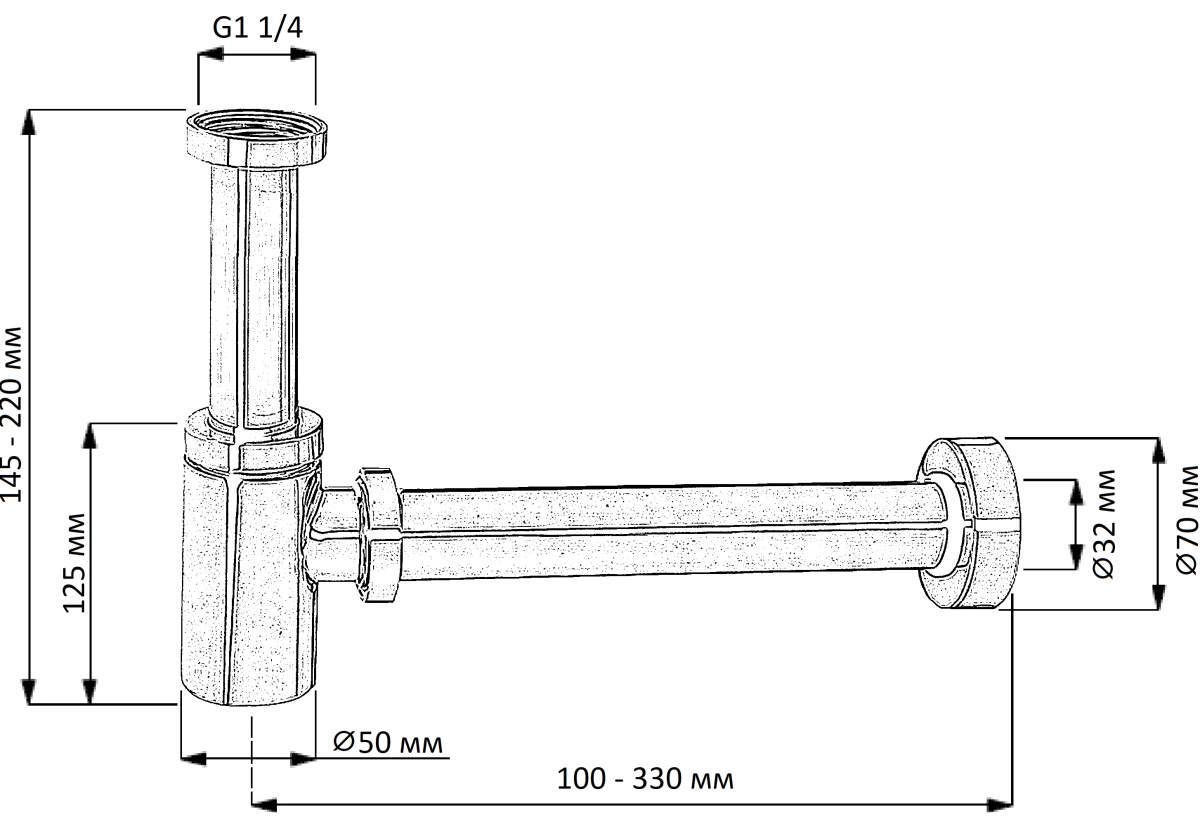 Тип: сифон для мойки / Предназначение: для раковины / Материал: металл / Цвет: хром