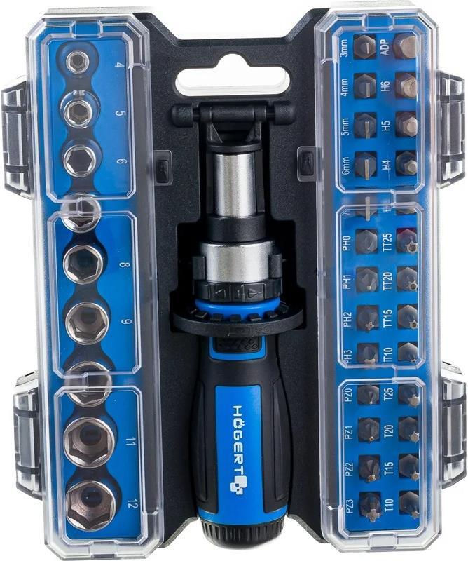 Тип: набор бит и головок / Материал: сталь / Количество предметов, шт.: 45 / Инструмент: биты;головки;трещотка