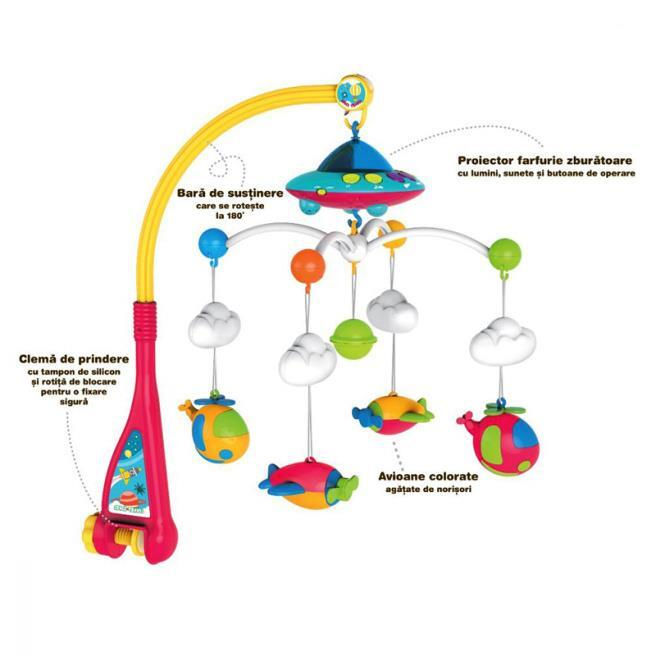 Тип: карусель для кроватки / Крепление: зажим / Музыкальные эффекты: да / Световые эффекты: да