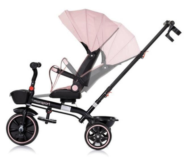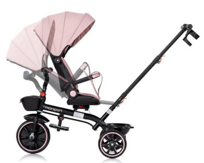 Тип: велосипед-коляска / Материал: ткань / металл / пластик / Максимальная нагрузка, кг: 25 / Цвет: розовый