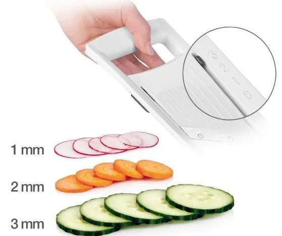 Тип: тёрка / Назначение: для нарезки ломтиками / Возможность мытья в посудомоечной машине: да / Материал: пластик / нержавеющая сталь