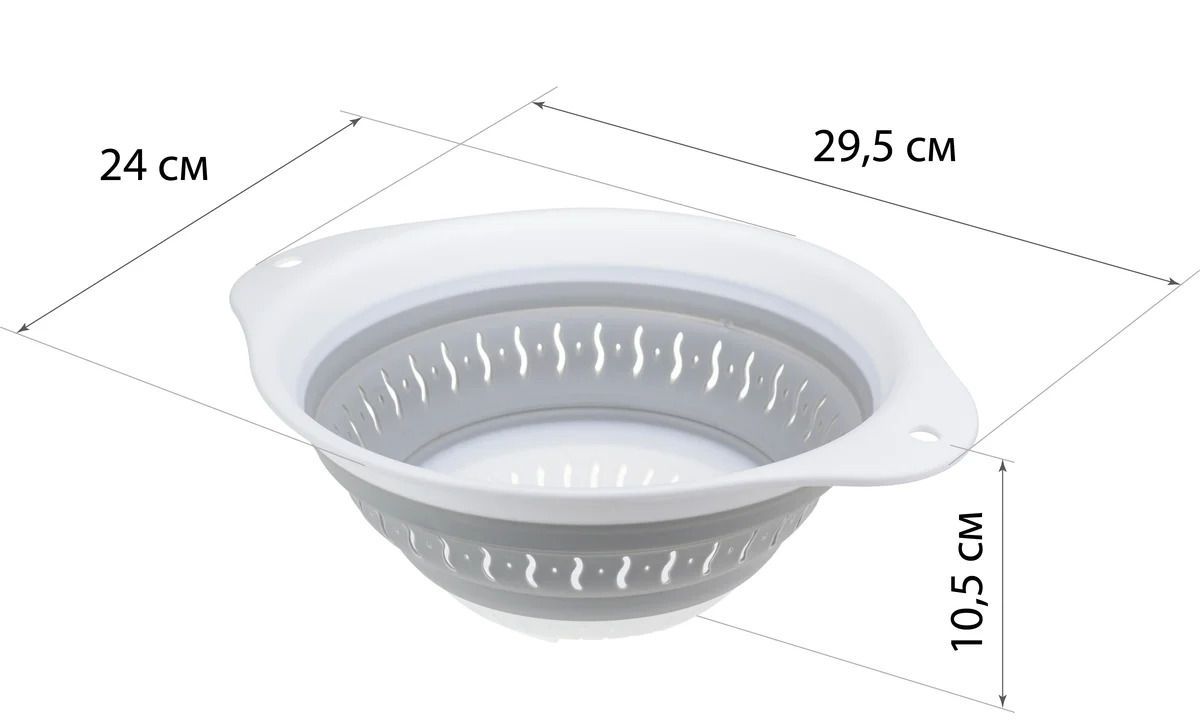 Тип: дуршлаг / Диаметр, мм: 240 / Высота, мм: 105 / Материал: полипропилен