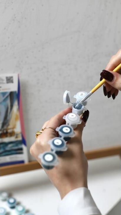 - Комплектация 3 кисточки,акриловые краски,настенные крепления,холст