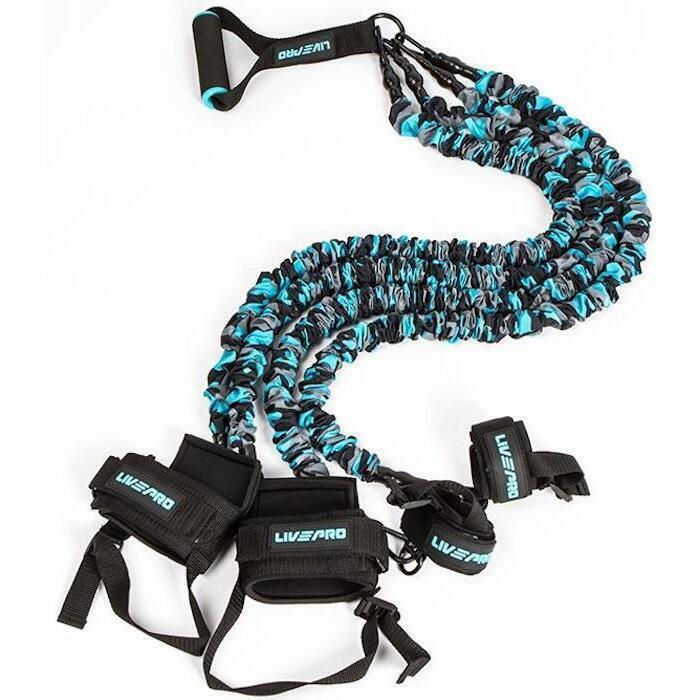 - Комплектация 4 эспандера в рукаве; 2 манжета на щиколотку; 2 манжета на запястье; 1 рукоятка