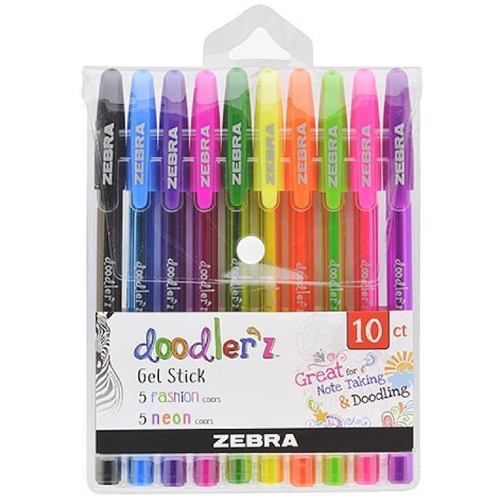 Гелевые ручки Zebra Doodler'z оснащены водостойкими чернилами в 10 ярких и неоновых цветах. С наконечником 1 мм они обеспечивают исключительно плавное и точное письмо. Эти ручки идеально подходят для письма на тёмной и чёрной бумаге. Отлично подходят для украшения блокнотов, письма, раскрашивания, ведения заметок и учебы. Ручки Doodler'z позволят вам безгранично выражать свою креативность благодаря широкому спектру цветов.