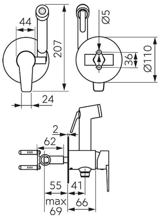 Тип: смеситель / Тип монтажа: настенный / Назначение: для биде / Материал корпуса: латунь