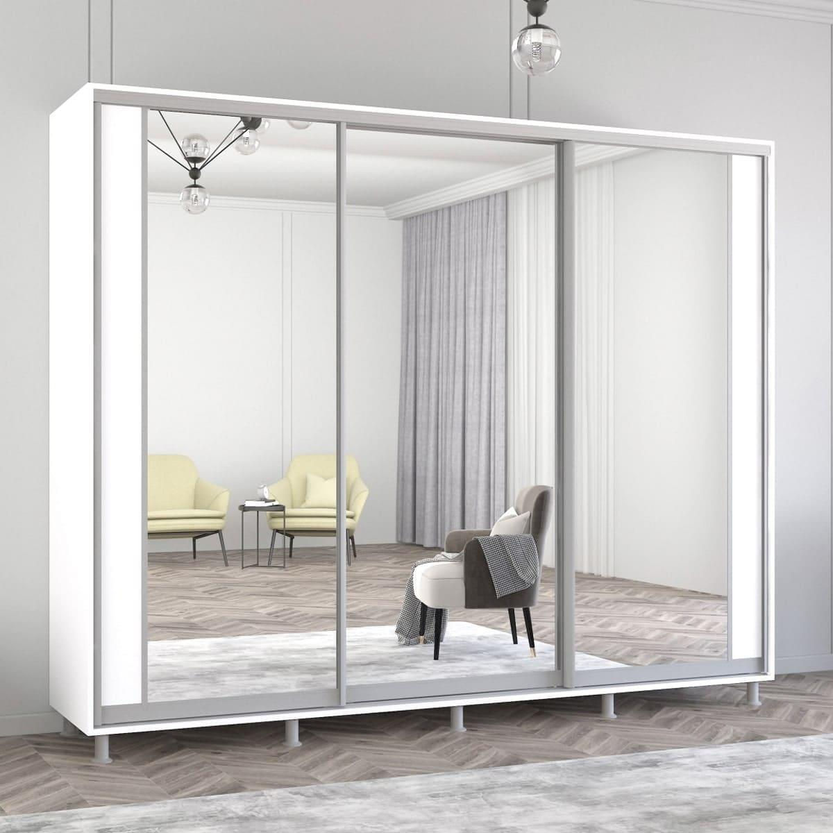 Шкаф Mobildor-Lux Aron uși glisante din PAL cu oglindă vertical (270x60x210H cm) Alb Brilliant