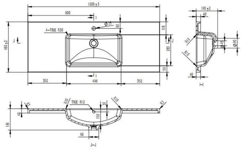 Раковина Moershu Auris 1200x460x195 накладной