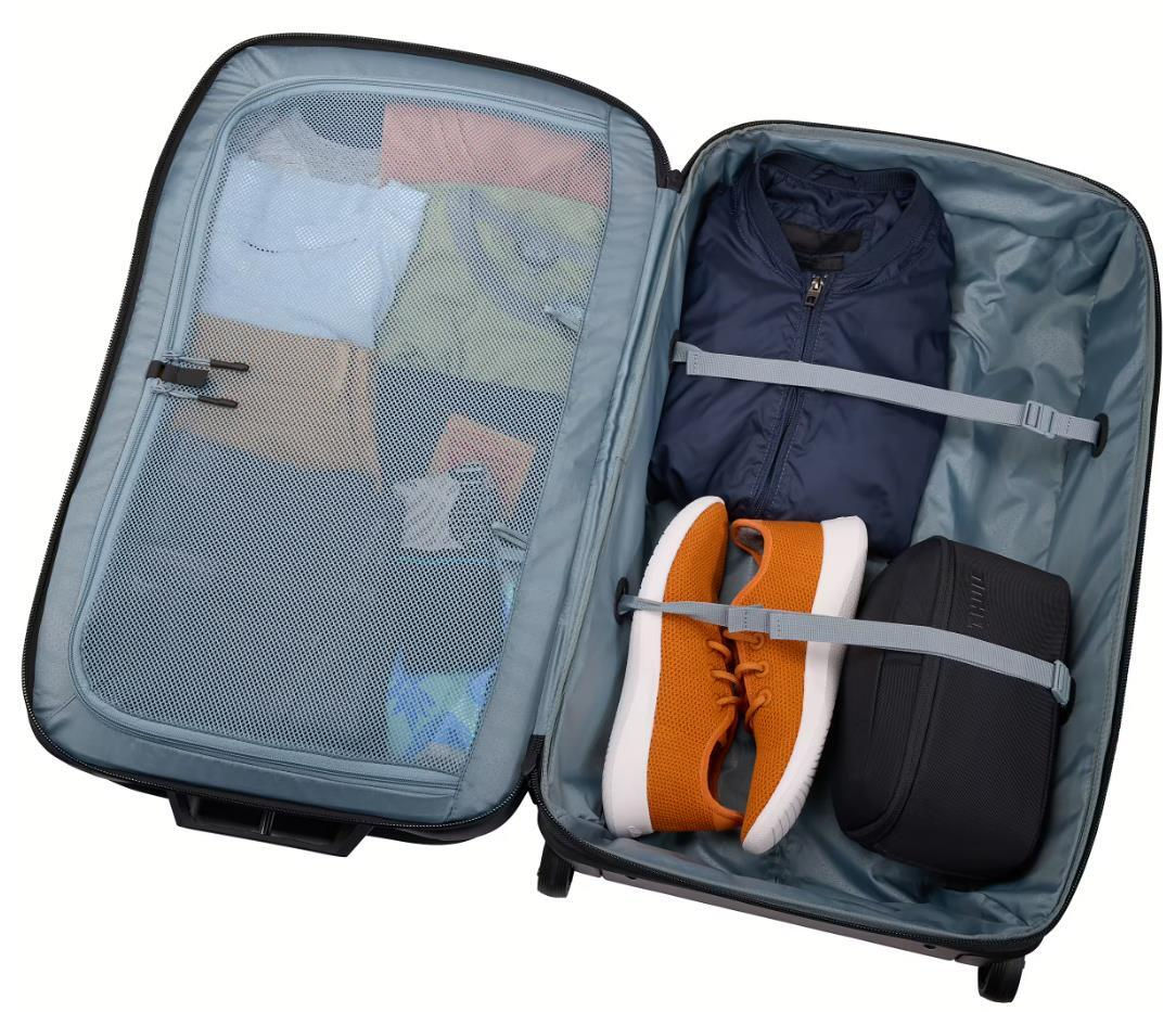 Выдвижная ручка: да / Количество колёс: 4 / Тип корпуса: мягкий / Диапазон объемов чемоданов, л: 41 - 69 (средний)