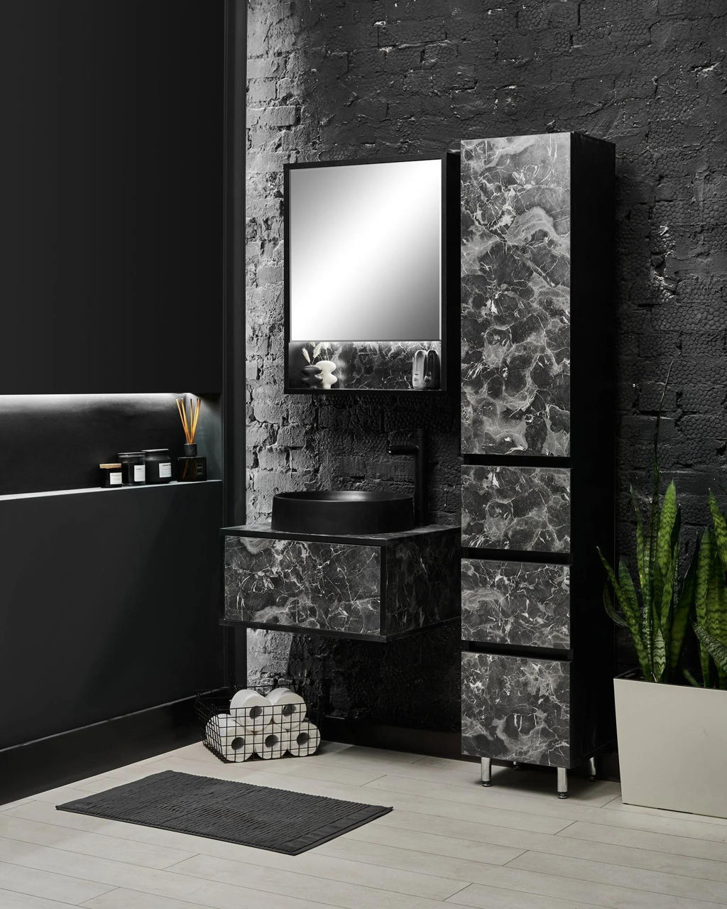 Тип монтажа: напольный / Материал фасада: ДСП / Цвет фасада: серый / чёрный / Материал корпуса: ДСП