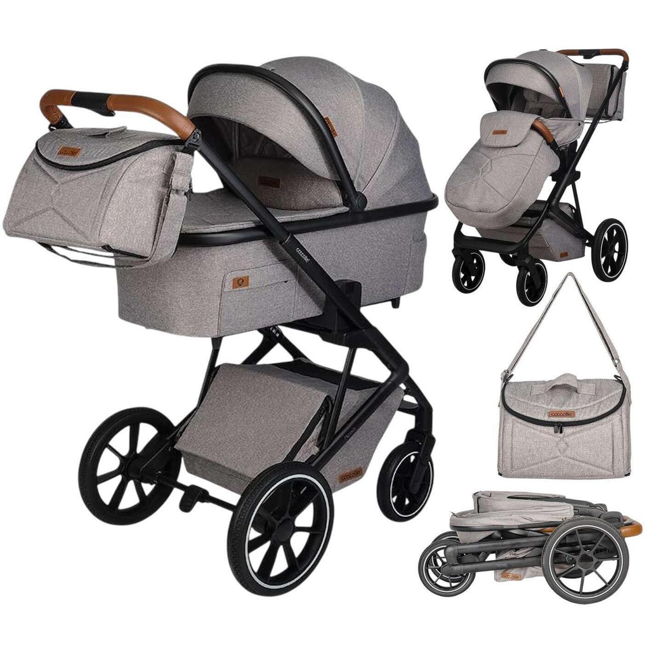 С модульной системой Coccolle Nessia 2in1 у вас есть все продукты и аксессуары, которые вы будете использовать, начиная с новорожденного: коляска, спортивный блок, чехол для ног, защита от насекомых и дождевик, сумка для мам с двойной функцией.