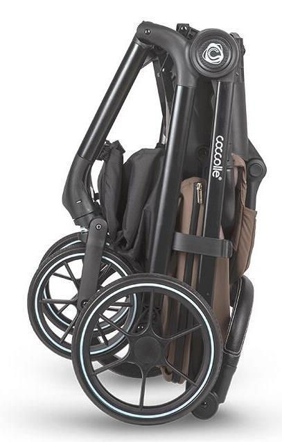 Оборудованная большими колесами с черными дисками и прочными полиуретановыми шинами, коляска Coccolle Serry обеспечивает отличную маневренность и плавный ход как по асфальтированным дорогам, так и по неровной местности. Неброский белый ободок на шинах дополняет городской стиль изделия. Тормоз легкодоступен, а подвеска обеспечивает плавный ход.