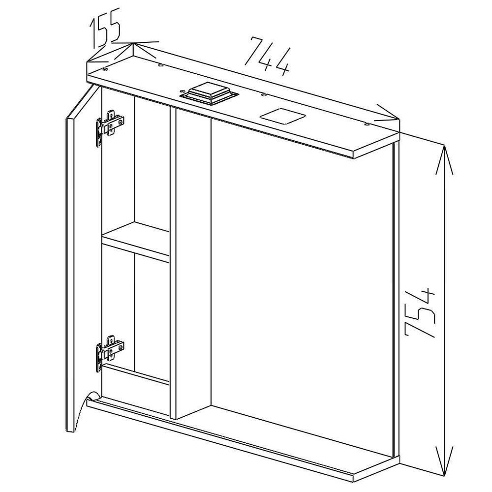 Тип: зеркало-шкаф / Тип установки: настенное / Материал корпуса: ДСП