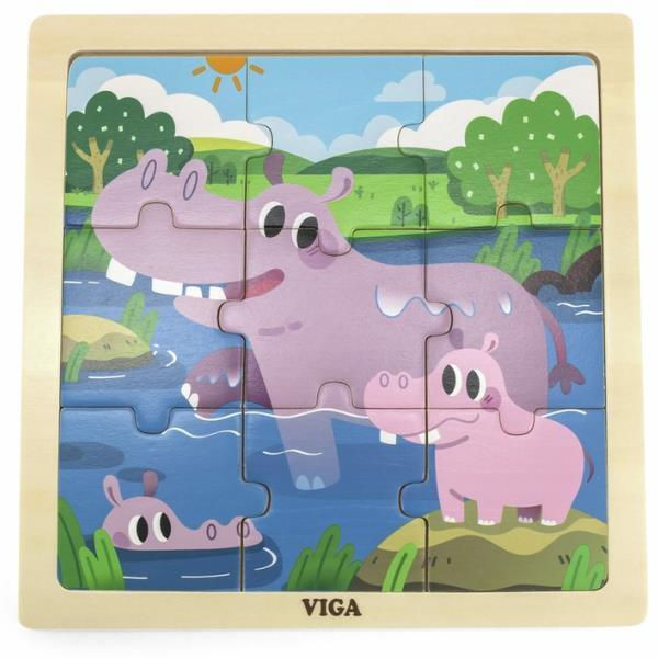 - Модель 44628 Puzzle din lemn Mama hiopotam și puiul ei, 9 elem.