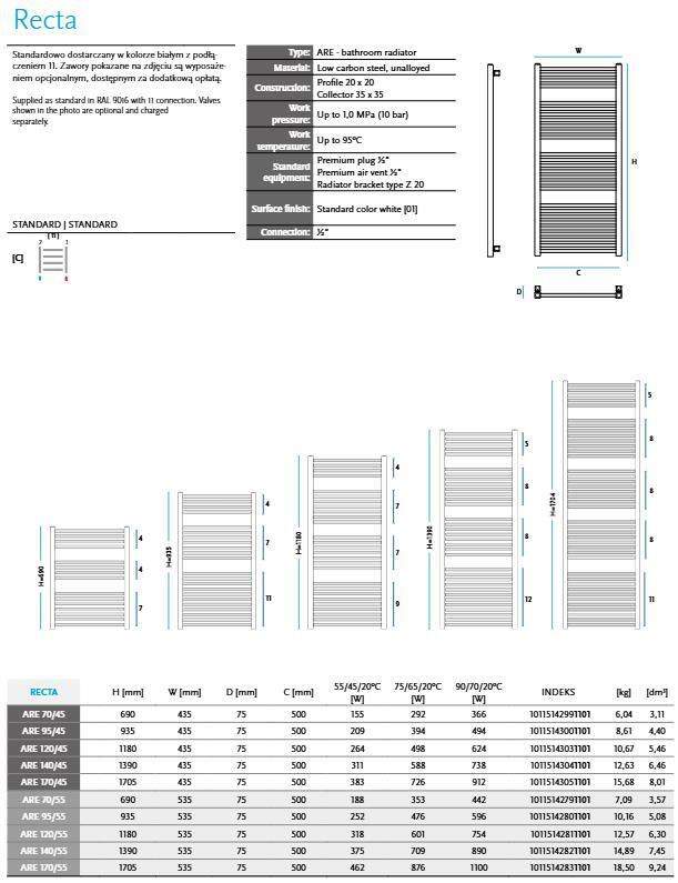 Полотенцесушитель Gorgiel RECTA ARE 90/55 White 01 {11}