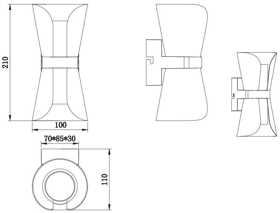 - Размеры (ШхВхГ), мм 100x210x110