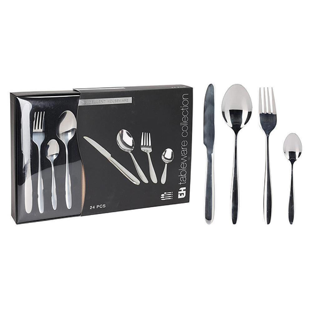 Полный комплект для 6 персон: включает 24 предмета – 6 ножей, 6 вилок, 6 столовых ложек и 6 чайных ложек. Отличный выбор для семейных обедов и праздничных ужинов.