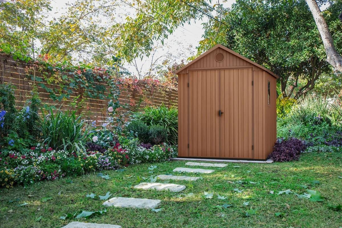 Сарай изготовлен из двойных стенок толщиной 16 мм, что обеспечивает отличную жёсткость конструкции и защиту от погодных условий.