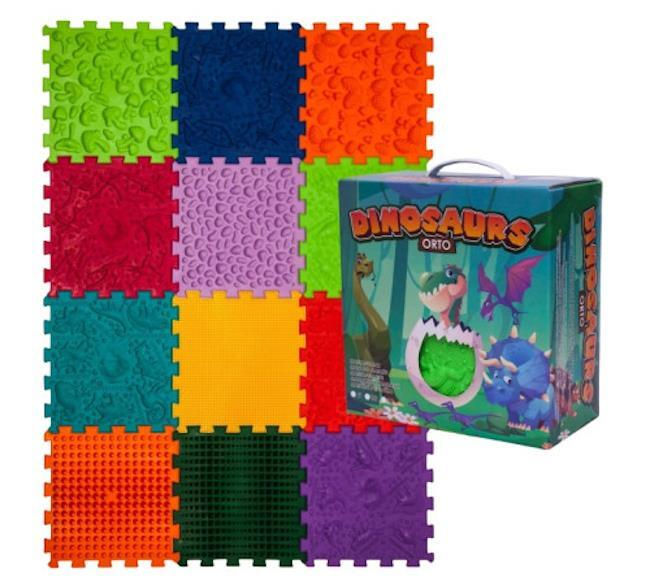 Коврик игровой Ortek 11684 Коврик-пазл ортопедический -массажный Набор 12 эл. Динозавры