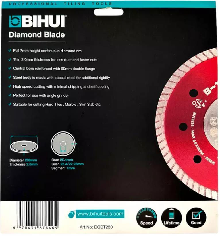 Диск отрезной Bihui DCDT230 Диск алмазный Turbo 230x25.4x2.0mm
