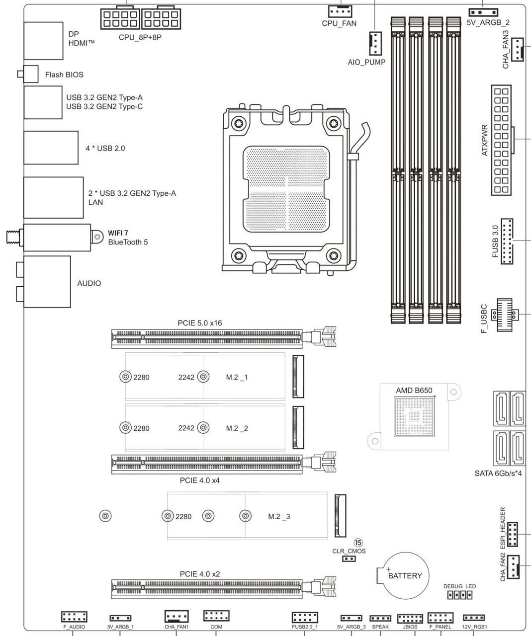 Разьём ЦПУ: AM4 / Тип оперативной памяти: DDR5 / Максимальный объём памяти, ГБ: 256 / Чипсет: AMD B850