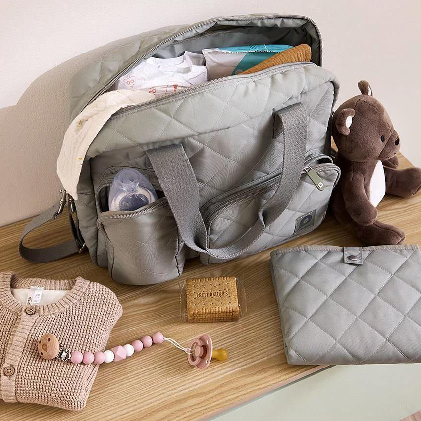 - Оформление плечевые ручки, съёмные ремни для коляски, 5 внутренних и 3 наружных кармана