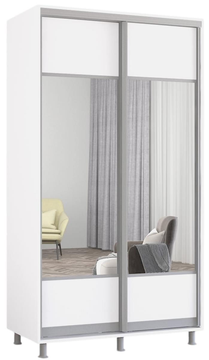 Dulap Mobildor-Lux Aron-S uși glisante din PAL cu oglindă (K1) orizontal (100x60x200H cm) Alb brilliant