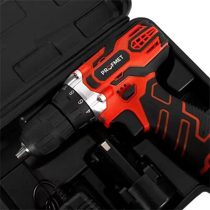 Шуруповёрт Profmet 857140 Masina de insurubat si gaurit, 12V, 20Nm, (acum 1.5Ah-2buc, incarcator)