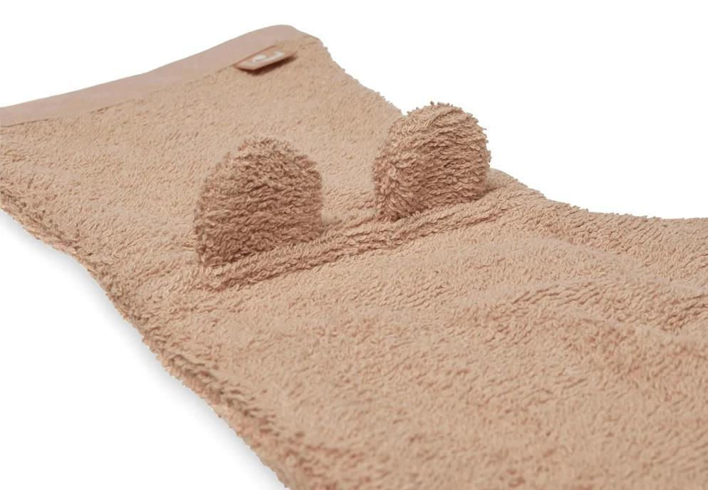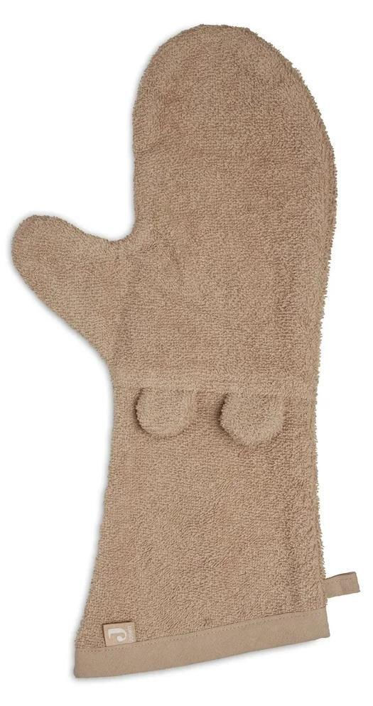 Варежка для мытья Jollein также имеет удобную петлю, чтобы повесить ее и дать высохнуть.