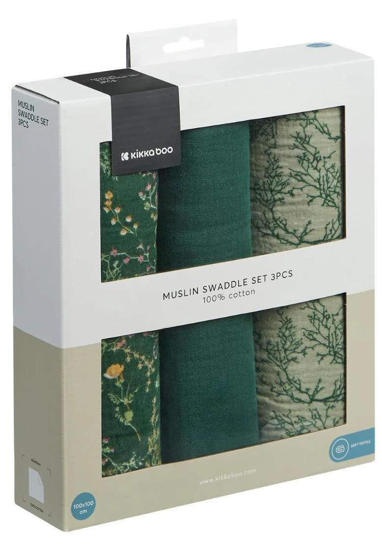 - Модель 31103010104 Pelinci de muselina Secret Garden Green, 100x100 cm, 3 buc.