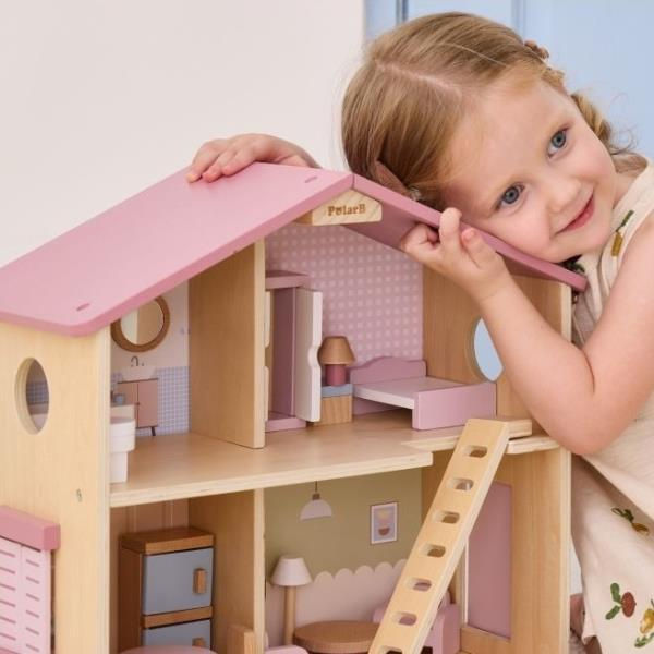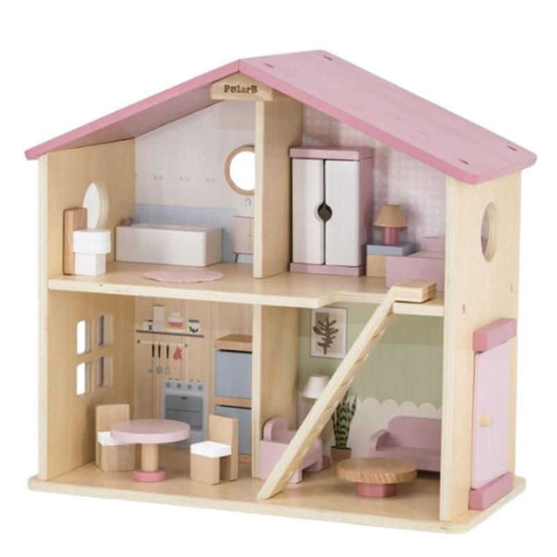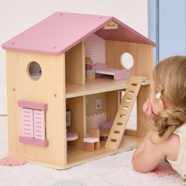 Căsuță pentru păpuși PolarB 44256 Căsuță din lemn pentru păpuși Roz