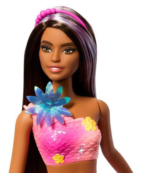 Дети могут играть с этой куклой как на суше, так и в воде, создавая чарующие цветочные превращения под солнцем или на морском дне. Иридисцентные цветы, плавники с градиентом и жемчужный ободок в длинных светлых волосах с розовыми прядями делают эту русалку по-настоящему волшебной и похожей на подводный сад.