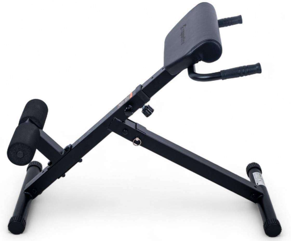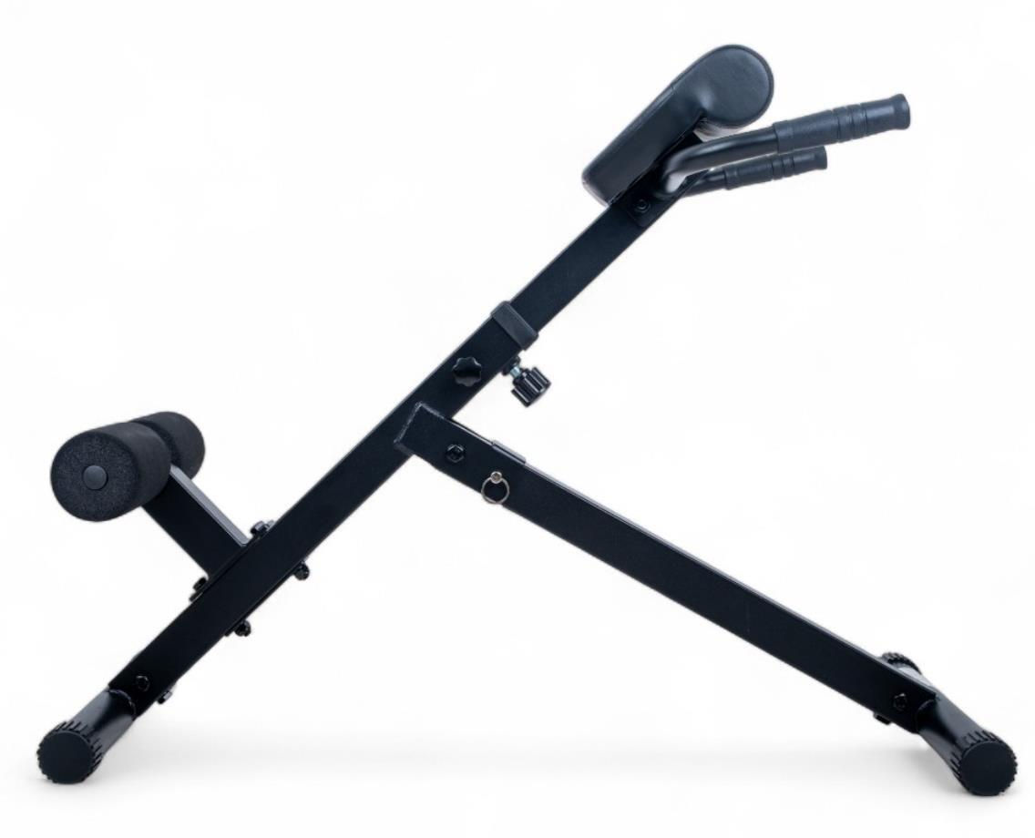 Прочная стальная рама с профилем 50×50 мм и максимальной нагрузкой 100 кг обеспечивает стабильность и безопасность, а мягкая опора и поролоновые валики гарантируют максимальный комфорт во время тренировки. Практичные ручки с антискользящей поверхностью помогают сохранять равновесие и правильную осанку.
