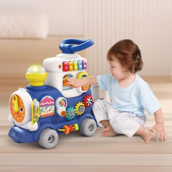 - Дополнительно 4 способа игры: каталка, ходунки, вагончик для перевозки игрушек и игровое сиденье