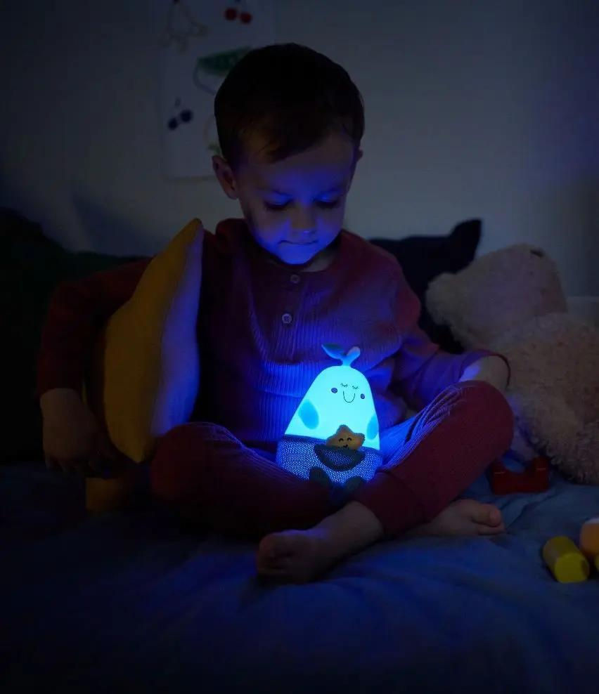 Тип источника света: LED / Тип питания: 3xAAA / Доп. особенности: мягкий ночник дарит тепло ночью, имеет 2 уровня яркости ,воспроизводите 3 разных звука / Цвет: серый
