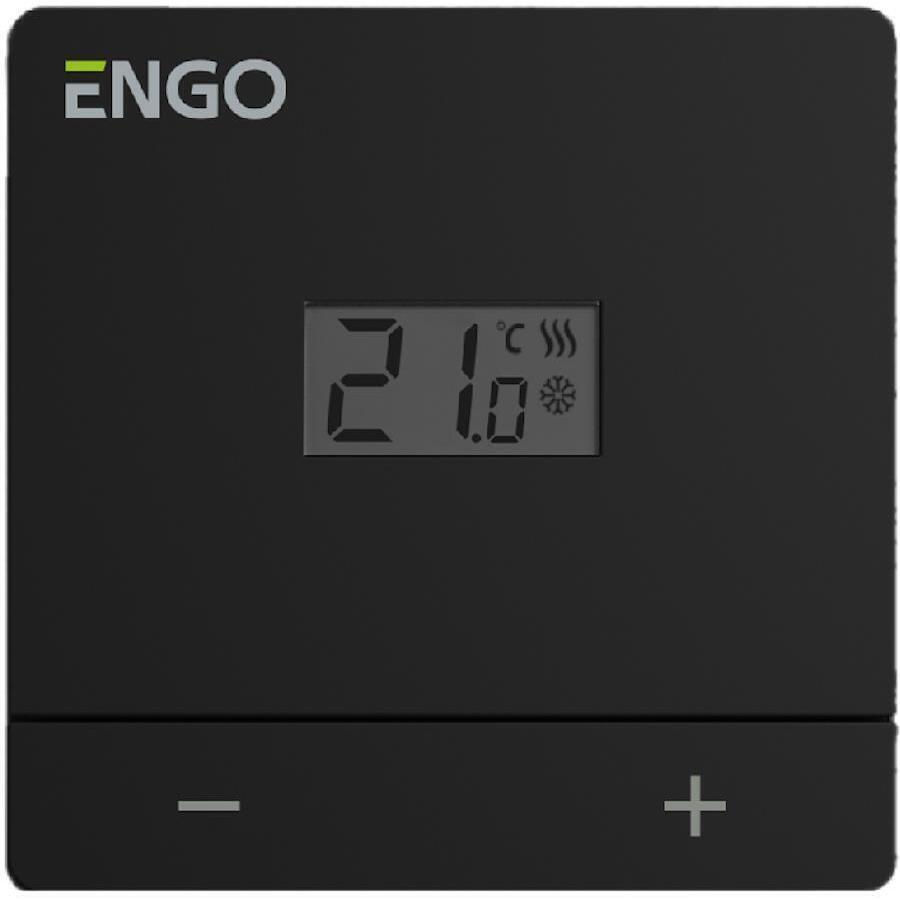 Термостат ENGO Controls EASY-230B, montaj pe perete, prin fir, ecran LCD, black