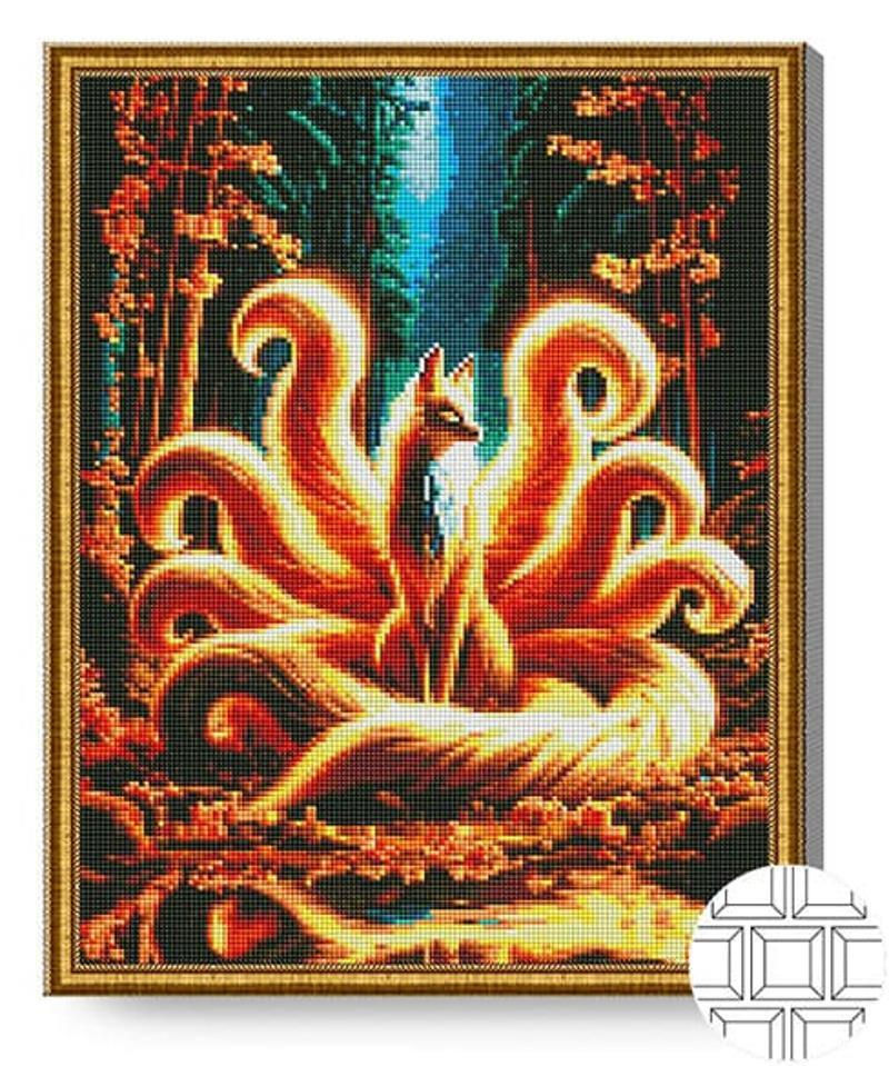 - Модель QB206518 Mozaic cu diamante patrate 40x50cm Vulpea cu noua cozi