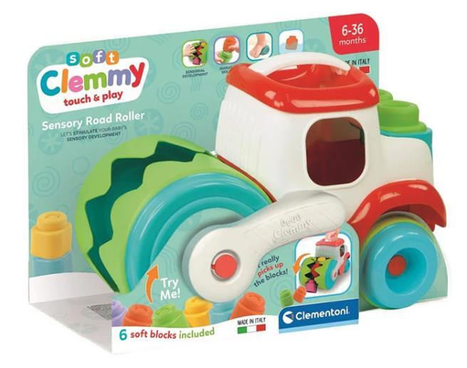 Транспортное средство, как и блоки Clemmy, имеет разные текстуры и вставки из мягкого материала. Игрушка стимулирует тактильное восприятие ребенка.