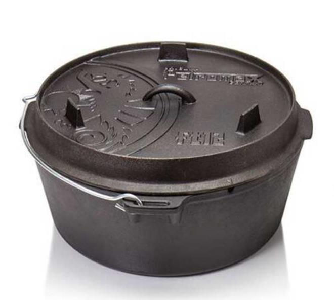 - Модель Dutch Oven 10L cu capac si fund plat, fonta