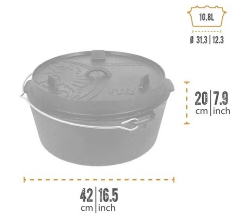 Тип: казан-кастрюля / Объём, л: 10,8 / Крышка в комплекте: да / Материал: чугун
