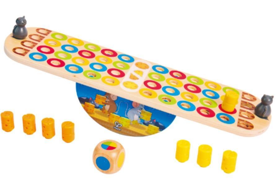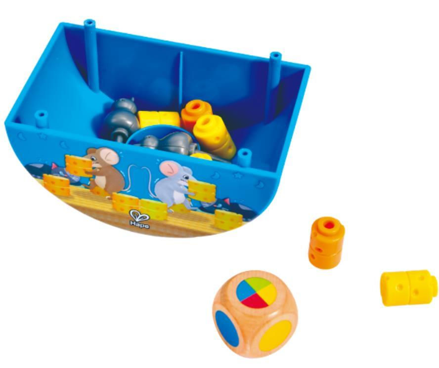 Начальный уровень: Выберите домик мышки и возьмите 4 кусочка сыра на игрока. Бросайте цветной кубик и ставьте сыр на соответствующее место, передвигаясь на одно поле за ход. Доведите весь сыр до дома, не разбудив кошку.