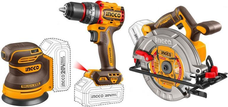 Профессиональный набор INDUSTRIAL INGCO COSLI250181 состоит из трёх беспроводных электроинструментов, идеально подходящих для строительных, столярных и слесарных работ: аккумуляторная циркулярная пила CSLI1851, аккумуляторная эксцентриковая шлифмашина CROSLI2002 и компактная ударная дрель-шуруповерт CIDLI20768, все с бесщёточными двигателями для высокой мощности и долговечности.
