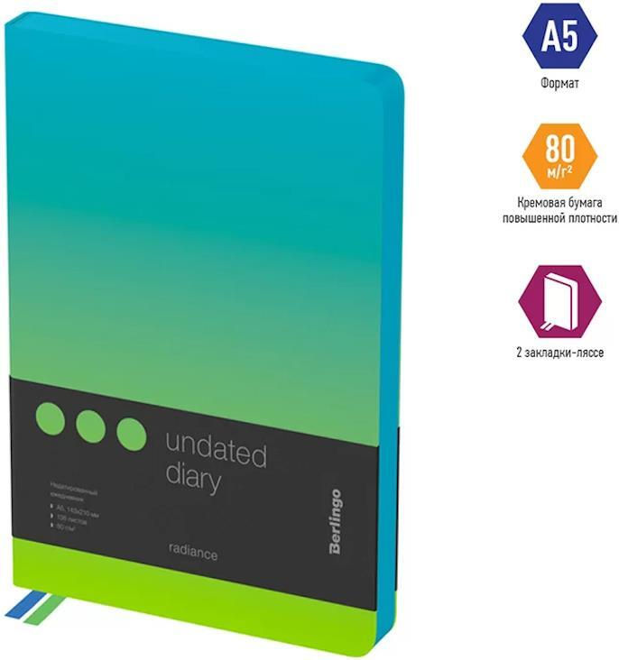 Блокнот Berlingo RL299179 Agenda nedatata Radiance A5, 136 foi, albastru
