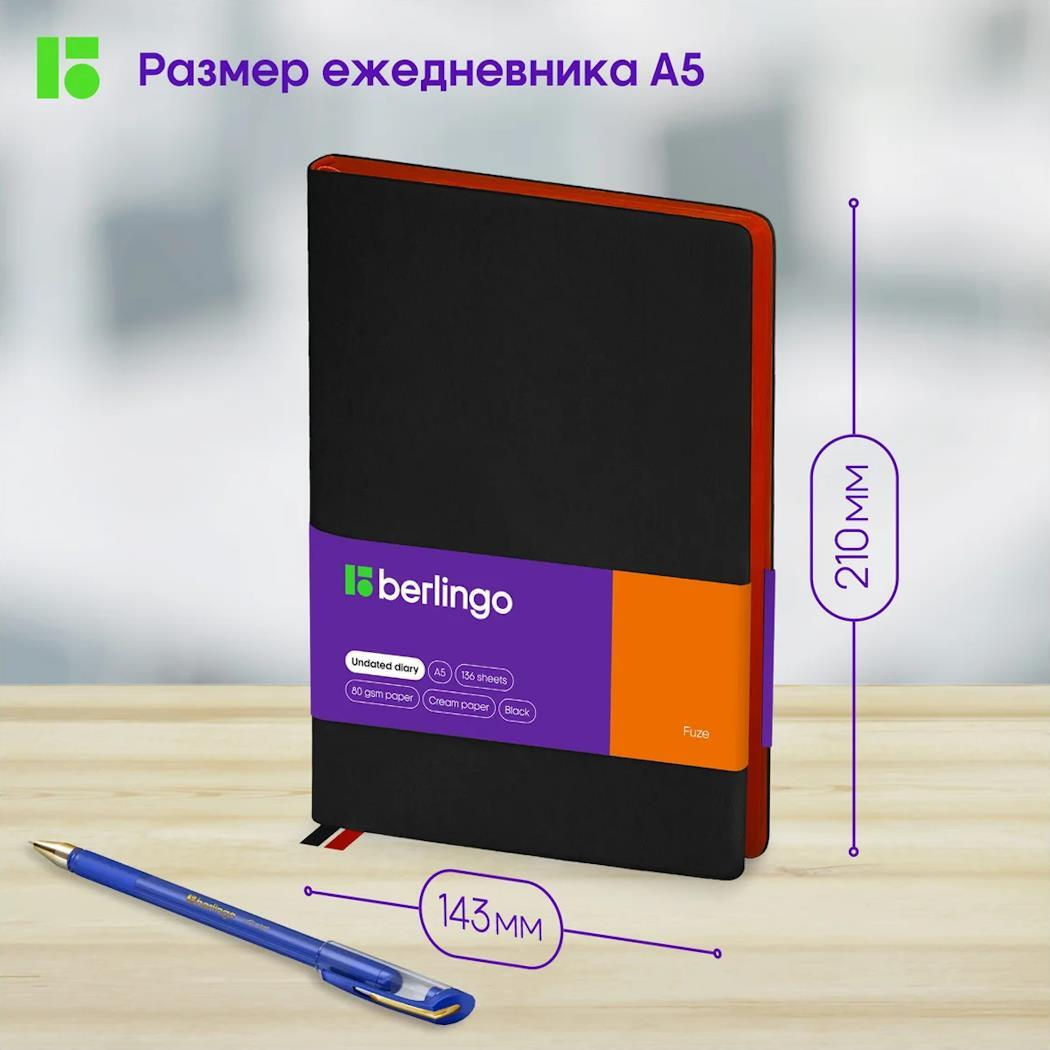Блокнот Berlingo RL276414 Agenda nedatata Fuze A5, 136 foi, negru
