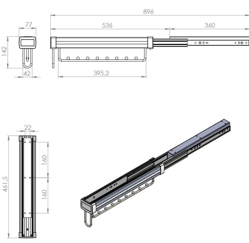 - Габариты (ВxШxГ), мм 142x770x467