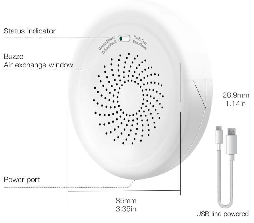 Moes ZigBee Smart Gas Leakage Detector — это современный датчик безопасности, предназначенный для своевременного обнаружения утечек природного газа. Он работает от сети 220 В AC, а также поддерживает альтернативное питание через Micro USB или Type-C (5V 1A), что делает установку гибкой и удобной.