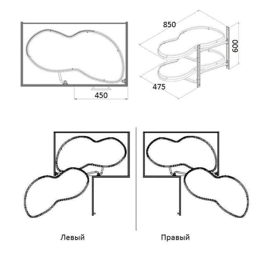 - Модель Secret Corner 450мм R SX п/з S-3016-UB-A правое выдвижение