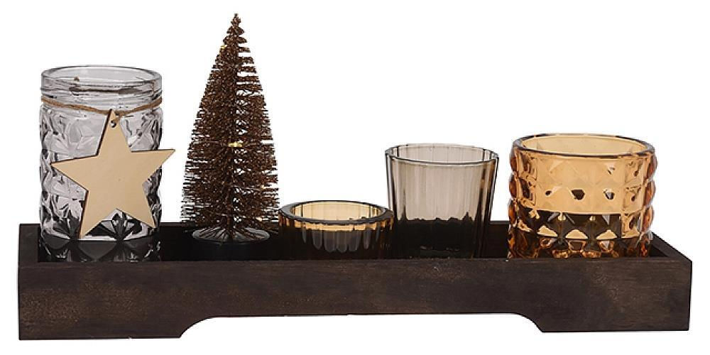 - Модель 48264 Candelabre din sticla 4buc si LED pe brad, tava 9.5X31.5cm