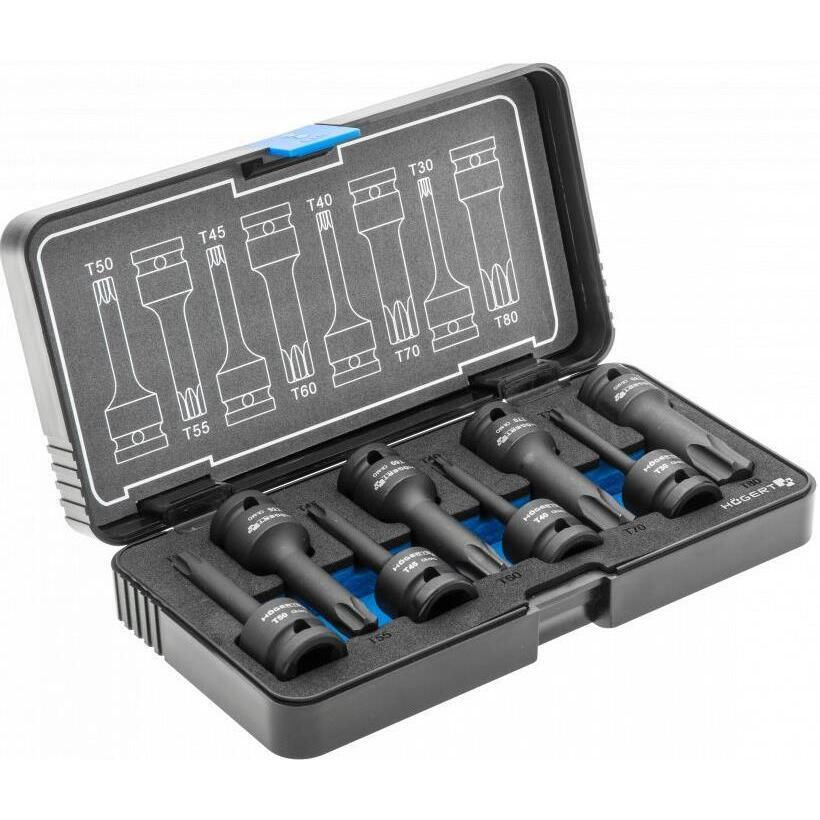 - Модель HT6R002 насадки ударные TORX, T30-T80, 1/2", 8 предм. CrMo